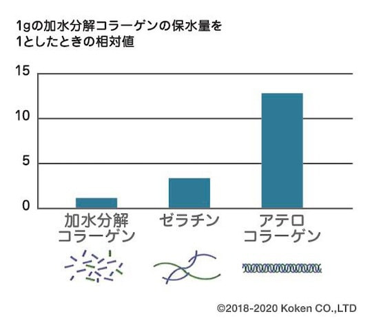 三重らせんコラーゲンは、加水分解コラーゲンと比較して13倍の保水力が認められました。